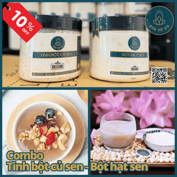 Combo Tinh Bột Củ Sen và Bột Hạt Sen – sự kết hợp hoàn hảo giữa hai sản phẩm thiên nhiên giàu dinh dưỡng, mang đến vô vàn lợi ích cho sức khỏe và sắc đẹp. Và đặc biệt, bộ combo này đang được ưu đãi giảm giá 10% chỉ trong thời gian giới hạn!
